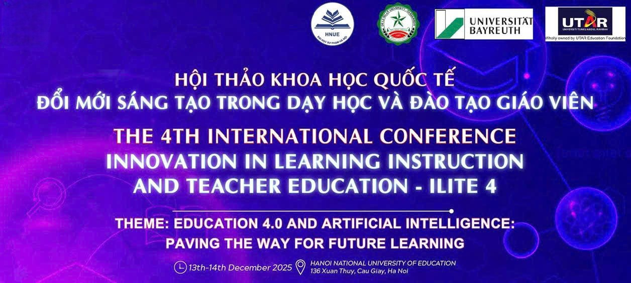 International Conference on Innovation in Learning Instruction and Teacher Education (ILITE) is a prestigious biannual event hosted by Hanoi National University of Education (HNUE, Vietnam), creating an international forum networking scholars, educators and policy-makers across the world to share our knowledge and look to the better future of education. The 1st edition was held in December 2019 under the theme “Competency-based Learning and Teacher education” was co-organized with Southern Cross University (Australia). The theme of the 2021 ILITE Conference was Innovation for sustainable education in the changing context. This 2nd edition was honorly co-organized with Cologne University, Bayreuth University, National Taiwan Normal University and UNESCO Chair in Reorienting Education towards Sustainability (York University, Canada). The 3rd Conference was co-organized with Cologne University, Bayreuth University, National Taiwan Normal University, New South Wale University. In December 2025, HNUE, with supports of Vietnamese Ministry of Education and Training, continues to host the 4th edition of ILITE under the theme: “Education 4.0 and Artificial Intelligence (AI): Paving the Way for Future Learning”.